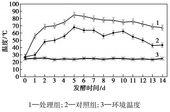 超高溫好氧堆肥技術(shù)相比于傳統(tǒng)的好氧堆肥具有發(fā)酵周期短、發(fā)酵溫度高的優(yōu)點,同時可以在不依賴外源加熱的條件下,使發(fā)酵溫度超過80℃,抑制有害微生物生長。