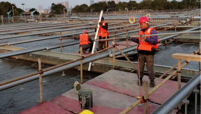▲孝昌市政水廠新增可提升曝氣裝置改造施工現(xiàn)場。