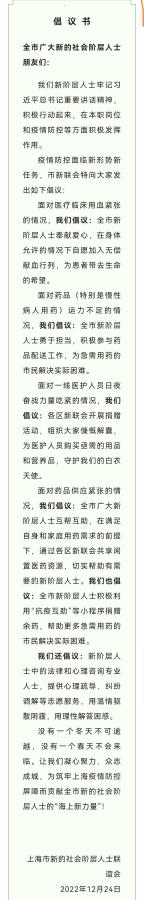 他的倡議得到了市新聯(lián)會會長班子支持,大家一致認(rèn)為上海正在或即將面臨三方面的壓力:藥品供應(yīng)和醫(yī)療臨床用血緊張、藥品(特別是慢性病人用藥)運(yùn)力不足、一線醫(yī)護(hù)人員日夜奮戰(zhàn)力量吃緊。于是,經(jīng)過不到兩天的討論就擬出了《倡議書》。