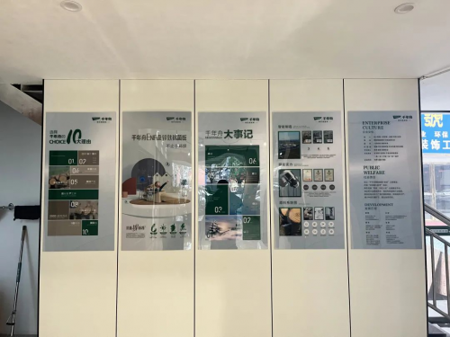 企業(yè)文化墻記錄了千年舟的發(fā)展歷程和企業(yè)優(yōu)勢(shì)。