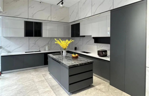 黑白搭配的櫥柜設(shè)計(jì)簡(jiǎn)約而又不失人間煙火氣,大多為簡(jiǎn)單的直線,橫平豎直,減少了不必要的裝飾線條,用簡(jiǎn)單的直線強(qiáng)調(diào)空間的開闊感,色調(diào)偏冷,又給人清爽之感。