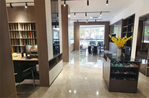 走進(jìn)門廳,映入眼簾的首先是黑白色簡(jiǎn)約風(fēng)前臺(tái)。門店的前臺(tái)是千年舟公司品牌文化的體現(xiàn),極簡(jiǎn)風(fēng)前臺(tái)無不彰顯著千年舟的格調(diào)與沉穩(wěn)。