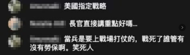 但是,臺灣的年輕人對于蔡英文的說辭似乎并不買賬。對于現(xiàn)有義務(wù)役期即將延長,不少青年都表示不能接受,在網(wǎng)絡(luò)上留言表示“不愿為民進黨打仗”“民進黨不倒,臺灣不會好”;也有網(wǎng)友寫道,“進去里面也是沒在干嘛,掃掃地、除除草”;還有人站在家長的立場表示“會擔(dān)心自己的小孩”;還有人留言批評,認(rèn)為蔡英文是在“陷臺灣于戰(zhàn)爭邊緣”,表示“反對延長兵役期”,稱此舉是“美國指定戰(zhàn)略”。