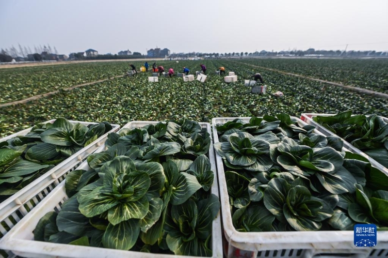 12月27日,在嘉興市南湖區(qū)鳳橋鎮(zhèn)茜柳村,種植戶在采收蔬菜。