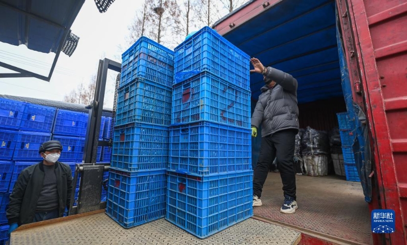 12月27日,在嘉興市南湖區(qū)鳳橋鎮(zhèn)茜柳村,種植戶把采收的蔬菜裝車。