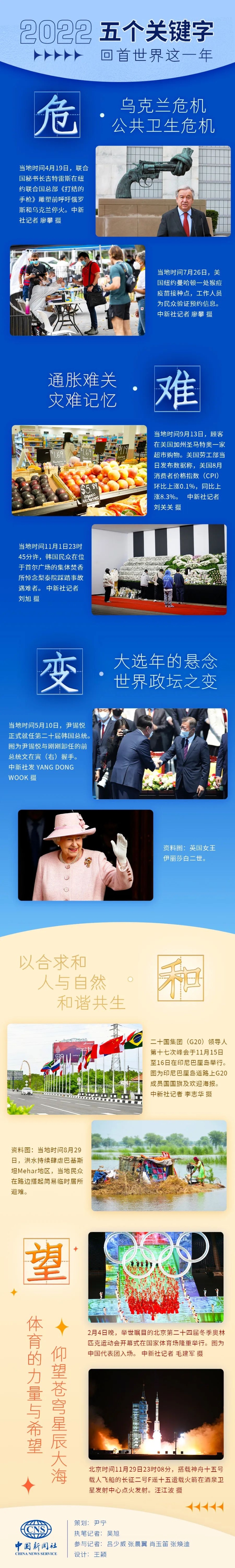 2022年,世界既不太平也不安寧。世紀(jì)疫情疊加地緣沖突,經(jīng)濟(jì)全球化遭遇逆流,國際格局面臨深刻變化。烏克蘭危機(jī)之痛,新冠肺炎疫情之困,全球供應(yīng)鏈?zhǔn)茏柚y,每一個(gè)字眼都注定了這一年的不平凡。幸運(yùn)的是,人類并沒有屈服于眼前“蝸牛角上”的世事紛爭,依然堅(jiān)定追尋著遠(yuǎn)方的天高地闊、星辰大海。莫道春光難攬取,浮云過后艷陽天。我們用五個(gè)字定格下屬于2022的世界記憶,風(fēng)雷激蕩之際,我們始終相信,人們終將會(huì)穿越寒冬,擁抱春的希望。