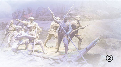 大連市關(guān)向應紀念館里,紅軍長征搶渡金沙江的情景雕塑。宋 斌攝