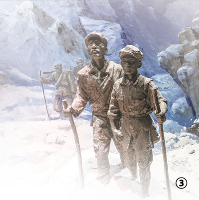 大連市關(guān)向應紀念館里,紅軍長征爬雪山時的情景雕塑。宋 斌攝