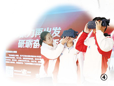 大連市第二十三中學學生用VR眼鏡體驗“云觀國防教育基地”H5小程序。 高 勇攝