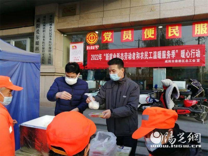 12月12日清晨,由秦都區(qū)總工會(huì)發(fā)起的2022年“新就業(yè)形態(tài)勞動(dòng)者和農(nóng)民工溫暖服務(wù)季”暖心行動(dòng)在咸陽(yáng)愛(ài)爾眼科醫(yī)院“愛(ài)心驛站”落地。秦都區(qū)西蘭路街道辦負(fù)責(zé)人、咸陽(yáng)愛(ài)爾眼科醫(yī)院工會(huì)主席配合,將秦都區(qū)總工會(huì)配送的二十多份愛(ài)心早餐逐一發(fā)送到濱河西路環(huán)衛(wèi)工人手中,為他們送去黨和政府以及工會(huì)組織的溫暖與關(guān)懷,感謝他們?yōu)槊阑鞘凶鞒龅呢暙I(xiàn),祝愿他們能度過(guò)一個(gè)寒冷的冬天。