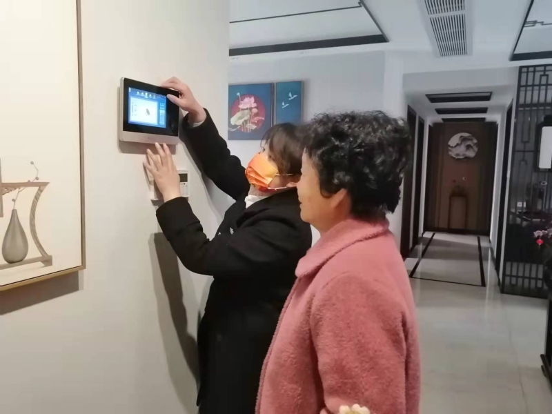 馬盼為業(yè)主演示如何使用可視對(duì)講機(jī)