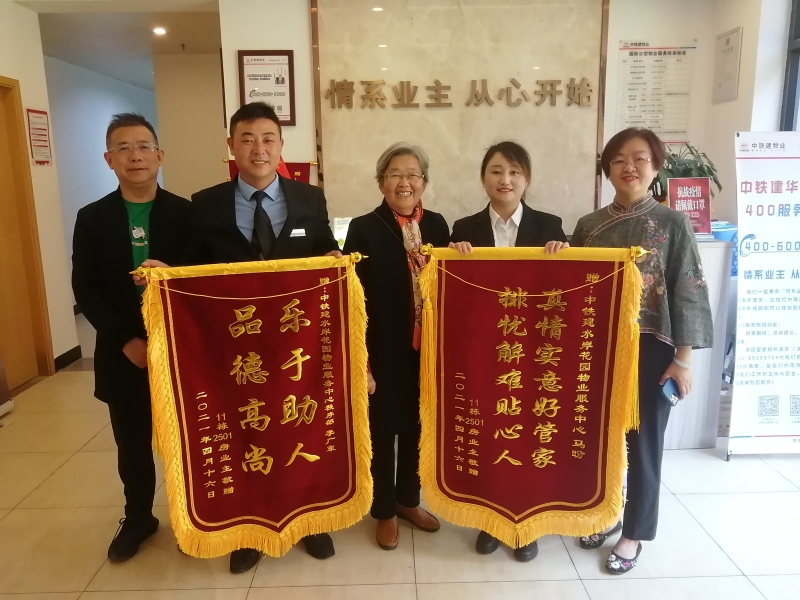 “小馬,謝謝你對(duì)我母親的關(guān)心和幫助!”近日,11棟的業(yè)主許先生帶著家人一起將兩面寫著“樂于助人,品德高尚”“真情實(shí)意好管家,排憂解難貼心人”字樣的錦旗送到了物業(yè)服務(wù)中心。