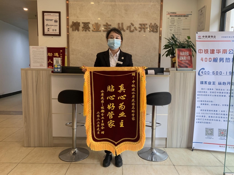 “我是代表我們1棟的部分業(yè)主特地來感謝管家馬盼的,也感謝中鐵建物業(yè)培養(yǎng)出了這么優(yōu)秀的員工,對(duì)業(yè)主有求必應(yīng),我們都省了不少心啊!”近日,1棟業(yè)主魏女士手持著帶有“真心為業(yè)主,貼心好管家”字樣的錦旗來到物業(yè)服務(wù)中心,對(duì)馬盼表示了感謝。