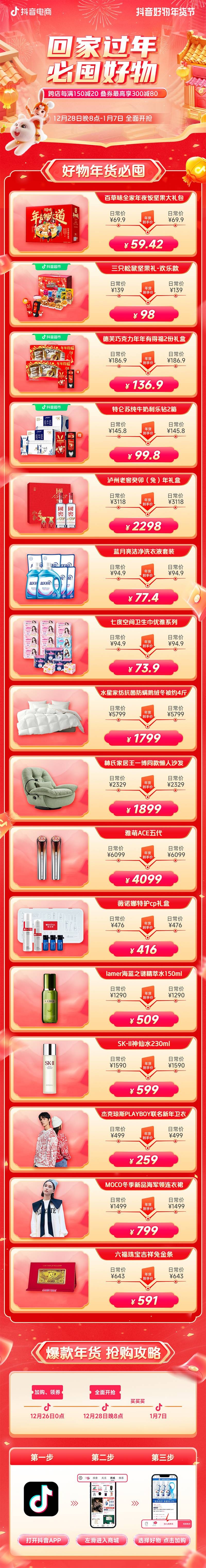 來抖音好物年貨節(jié),樂享全場新春放價,跨店每滿150減20,與抖音電商一起迎接兔年!(文/李文星)