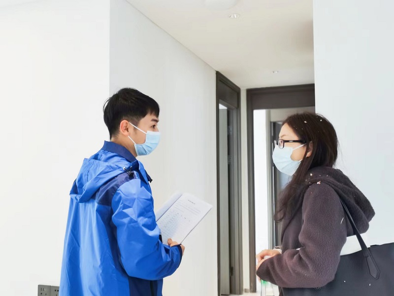 從接待、手續(xù)辦理、鑰匙交接,到帶領(lǐng)驗(yàn)房,新房交付過程在工作人員的引導(dǎo)下井然有序開展。工作人員協(xié)助業(yè)主驗(yàn)房、逐項(xiàng)檢查,大至公共區(qū)域的單元門禁、電梯,小至家中的墻面、水電、窗戶、陽臺(tái)玻璃等處,并記錄驗(yàn)房過程中反饋的問題,讓每一個(gè)交付環(huán)節(jié)都經(jīng)得起檢驗(yàn)。
