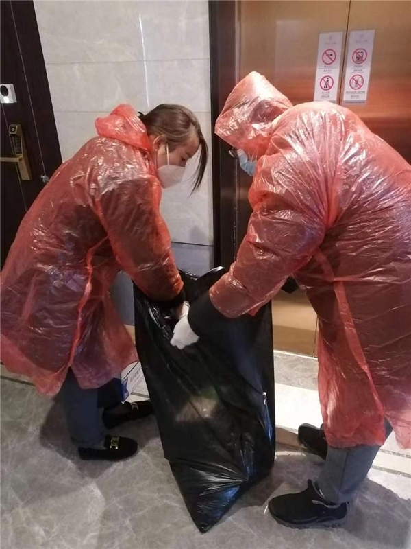 售后人員及管家為“陽性”居家隔離業(yè)主收取生活垃圾