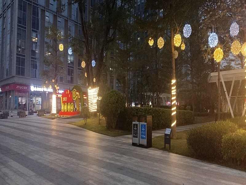 經(jīng)過謝揚(yáng)眉與各部門負(fù)責(zé)人的認(rèn)真選址后,園區(qū)中央1號(hào)樓旁的位置成為了此次道路景觀的最佳設(shè)置點(diǎn)。敲定地點(diǎn)后,物業(yè)服務(wù)中心品質(zhì)部人員精心挑選、購買節(jié)能彩燈及景觀標(biāo)志,工程部強(qiáng)電組人員馬不停蹄地開始懸掛裝飾景觀設(shè)置點(diǎn)。