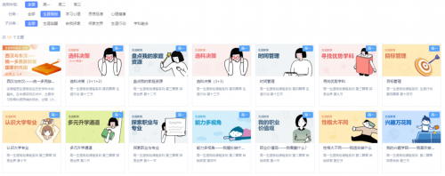 在設(shè)計生涯內(nèi)容期間,升學(xué)e網(wǎng)通將內(nèi)容細分為“生涯喚醒”、“自我探索”、“探索世界”、“生涯行動”、“學(xué)科融合”五個類別。幫助學(xué)生認知自我,發(fā)展和提升綜合素養(yǎng)與能力,同時實現(xiàn)全面而有個性發(fā)展,也為學(xué)生后續(xù)的分班選科、學(xué)業(yè)規(guī)劃、以及將來高考的志愿填報、大學(xué)專業(yè)選擇做好充分準(zhǔn)備。