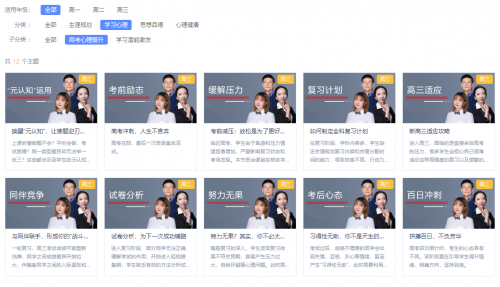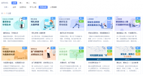 班會課分為:生涯規(guī)劃、學(xué)習(xí)心理、思想品德、心理健康四個版塊,屆時可為高一、高二、高三各個年級提供不同的個性化內(nèi)容。