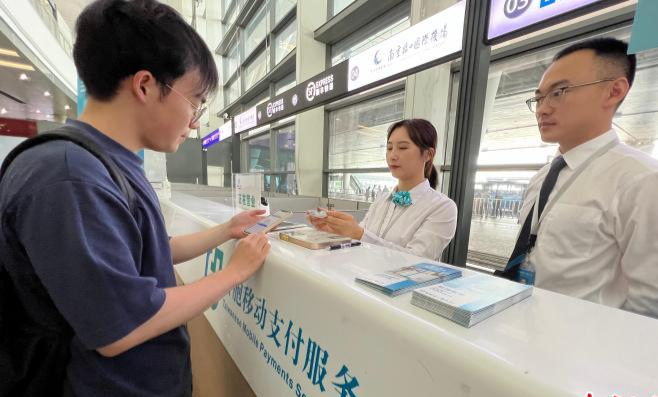 中新社南京9月11日電(記者 朱曉穎)臺胞移動支付服務(wù)點11日在南京祿口國際機場啟用。中新社記者在機場看到,不少乘坐直航航班的臺胞剛落地就在服務(wù)點排隊辦理銀行卡,綁定各移動支付平臺,以便在大陸食住行娛購等場景中快捷使用移動支付。