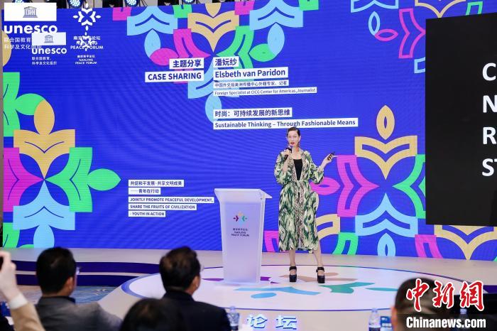 來自荷蘭的青年漢學(xué)家潘妧紗以“Z世代”視角,分享時(shí)尚消費(fèi)選擇對(duì)環(huán)境的影響。 南京和平論壇 供圖