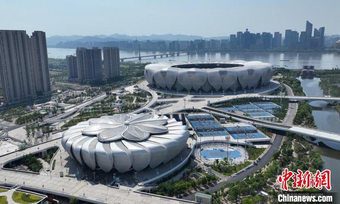 航拍杭州奧體中心的“大蓮花”和“小蓮花”。 (資料圖) 中新社記者 王剛 攝