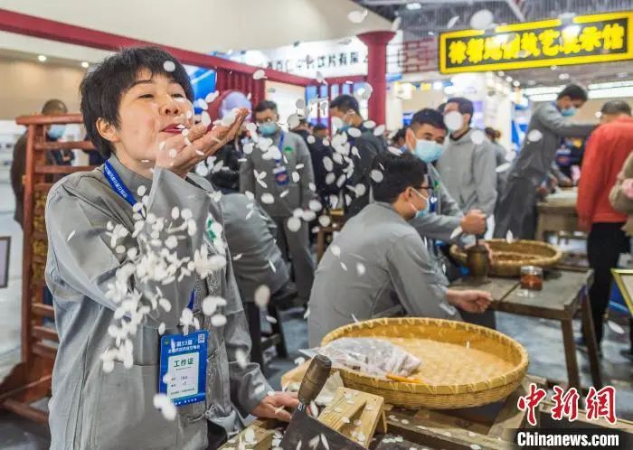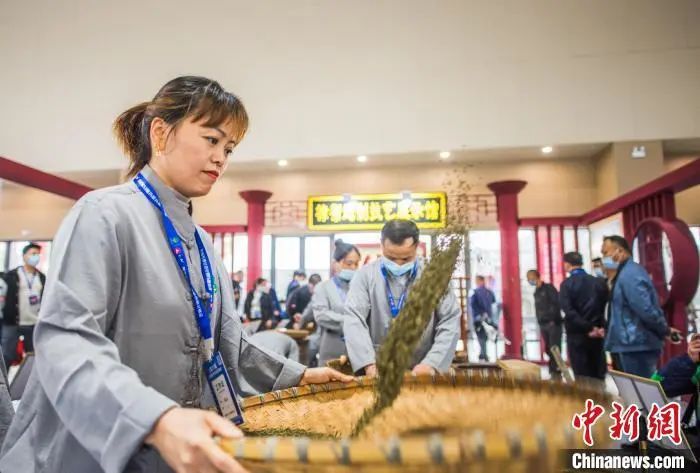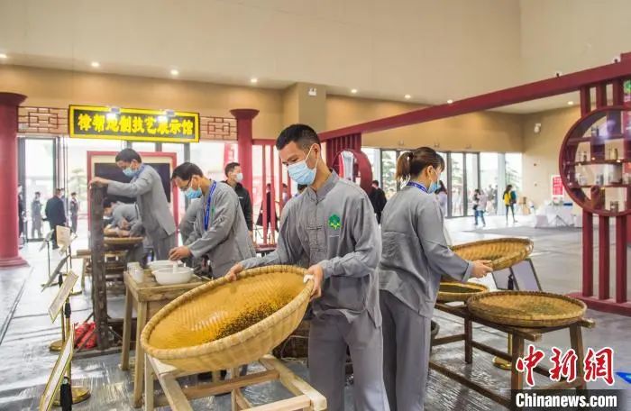 在樟樹岐黃小鎮(zhèn)會(huì)展中心,樟幫傳統(tǒng)中藥炮制技藝展演精彩上演。姜濤 攝