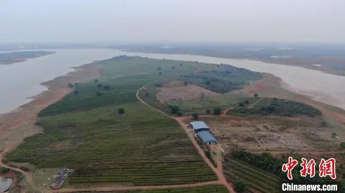航拍位于吳城水庫之畔的江西樟樹義成鎮(zhèn)黃梔子種植基地。姜濤 攝