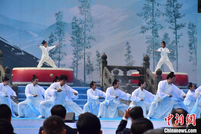 10月23日,2023世界武當太極大會開幕式上的表演武術。 中新社記者 馬芙蓉 攝