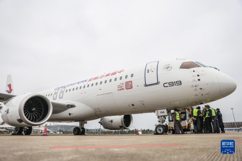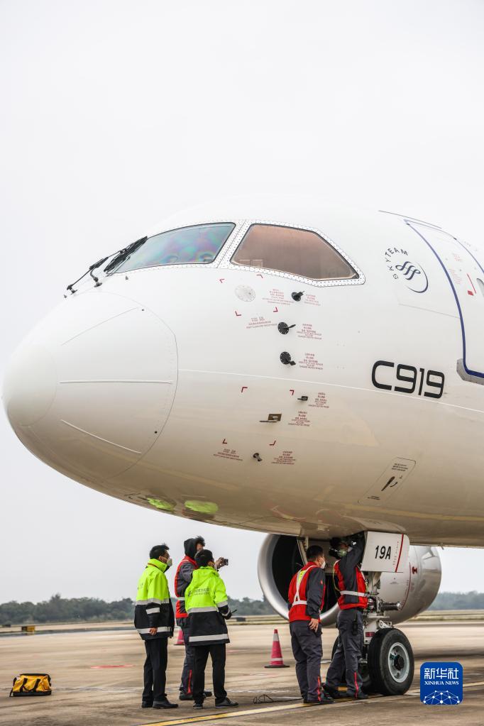 1月2日,國產(chǎn)大飛機(jī)C919停在海口美蘭國際機(jī)場。