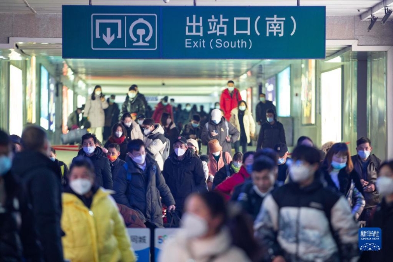 1月2日,旅客從南京火車站出站口出站。