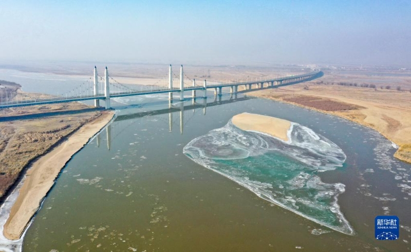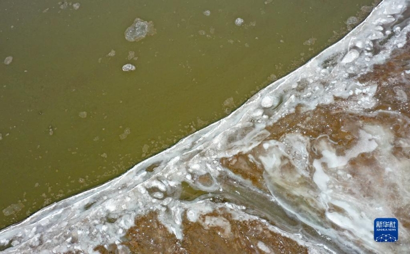 這是2023年1月2日在寧夏銀川市拍攝的黃河流凌(無人機(jī)照片)。