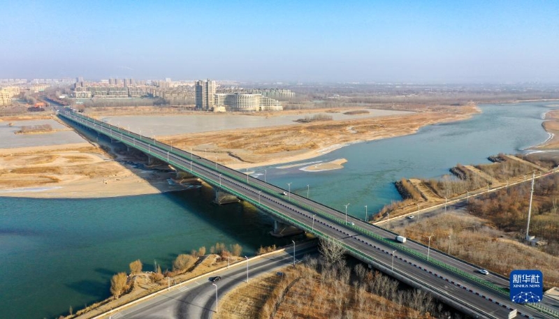 這是2023年1月2日拍攝的寧夏銀川市濱河黃河大橋(無人機(jī)照片)。
