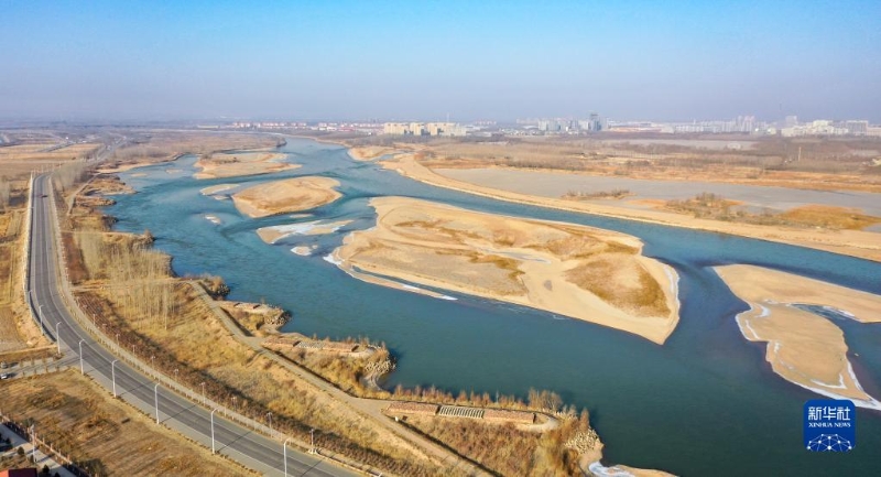 這是2023年1月2日拍攝的位于寧夏銀川市境內(nèi)的黃河景觀(無人機(jī)照片)。