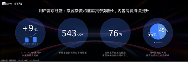 在家居產(chǎn)業(yè)鏈中,好內(nèi)容不僅有著打動人心的力量,更有撼動產(chǎn)業(yè)格局的價值,基于此,住小幫持續(xù)改善內(nèi)容畫風,著力建設(shè)創(chuàng)作者生態(tài)。在過去一年,用戶對家居興趣不斷增長,家居家裝類視頻內(nèi)容觀看量達到543億規(guī)模,且對于家居類內(nèi)容已經(jīng)開始從“找靈感”轉(zhuǎn)變成“找解決方案”。