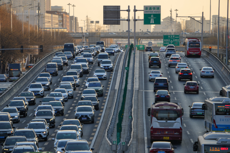 1月3日早高峰時(shí)段,在北京市朝陽(yáng)區(qū)建國(guó)路拍攝的早高峰車流。新華社記者 鞠煥宗 攝
