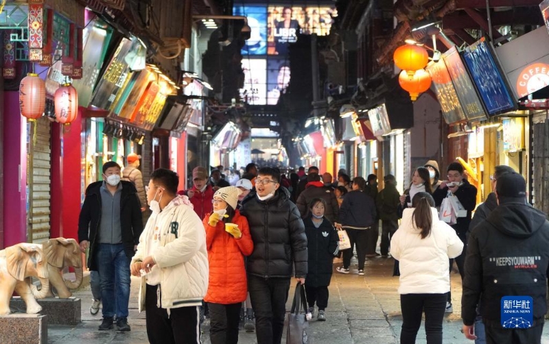 1月2日晚,人們?cè)谏綎|省濟(jì)南市芙蓉街游覽、品嘗小吃。