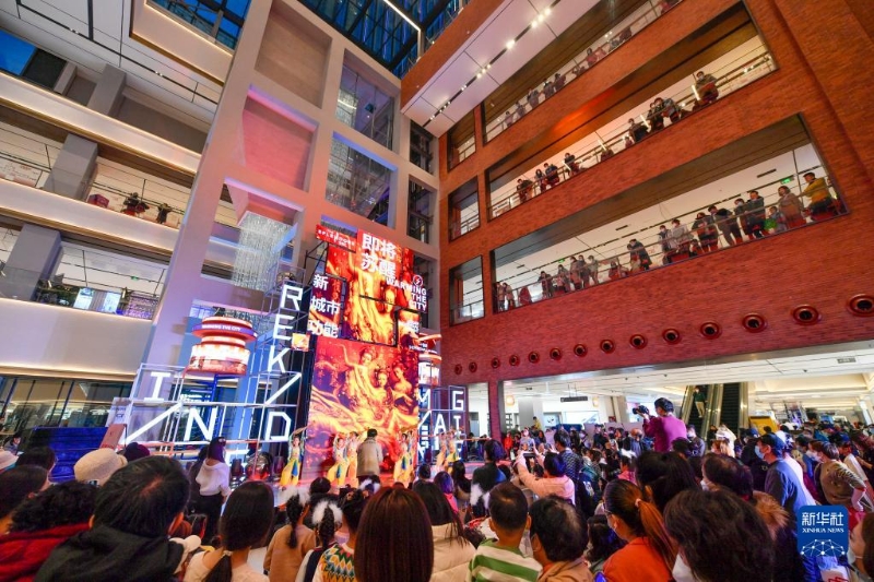 1月1日,市民在天津金茂匯商場(chǎng)內(nèi)觀看演出。