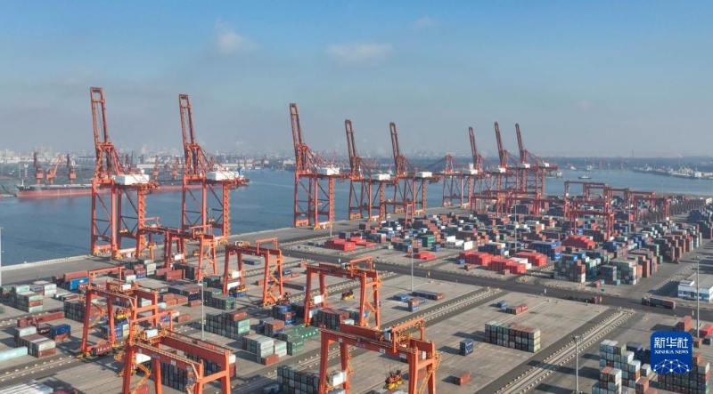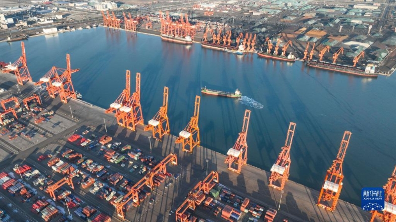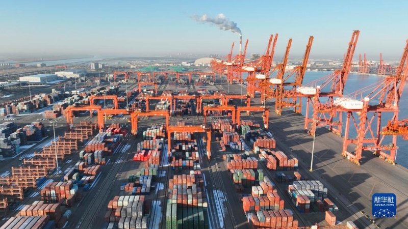 1月3日拍攝的河北唐山港京唐港區(qū)集裝箱碼頭(無人機(jī)照片)。