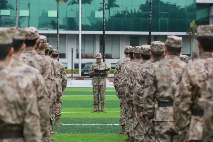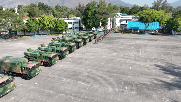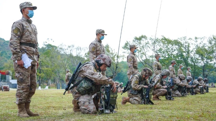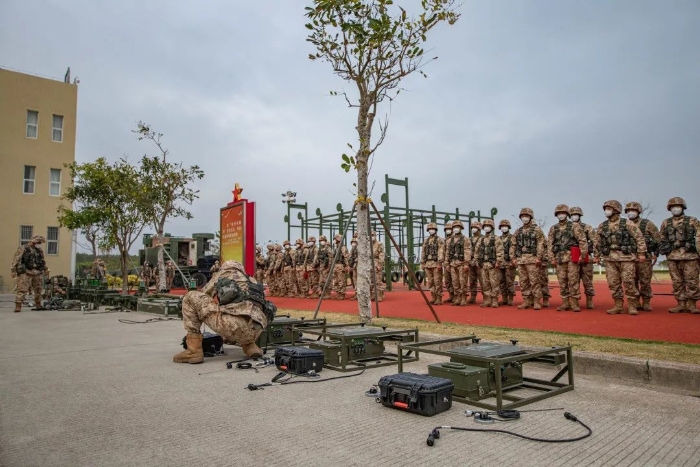 駐香港部隊陸??杖姽俦杆傧破饘崙?zhàn)化軍事訓練熱潮,不斷提高履行香港防務能力。在駐香港部隊某軍營防空陣地上,全營官兵展開防空對抗演練;在石崗軍營,空軍3架直升機迅疾起飛,進行新年首飛;在昂船洲軍營,海軍宿遷艦等5艘艦艇駛離軍港,前往某海域進行編隊航行、綜合攻防等實戰(zhàn)化課目訓練。