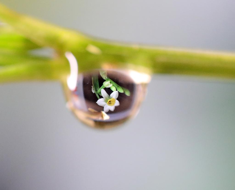 在浙江省諸暨市三都小學,水珠上映著開放的水仙花。新華社發(fā)(駱善新攝)