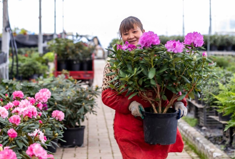 村民在貴州省畢節(jié)市百里杜鵑管理區(qū)匯境花卉科技園管護花卉。新華社發(fā)(范暉攝)