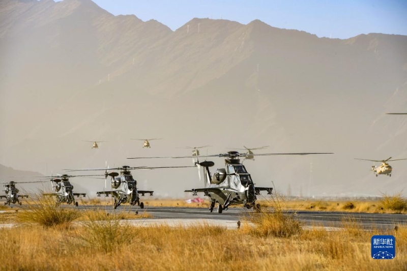 1月3日,在海拔3700米的拉薩某訓練場,西藏軍區(qū)某旅各型直升機依次升空,向預定作戰(zhàn)地域機動。