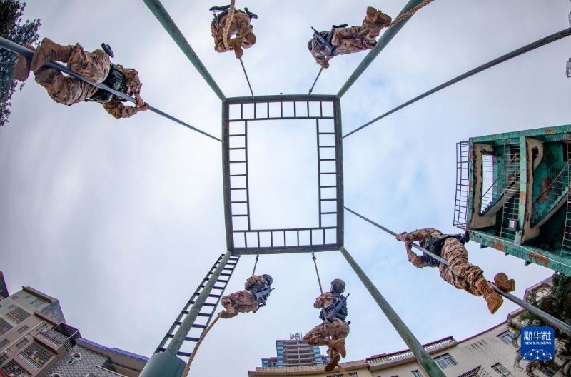 1月4日,武警廣西總隊北海支隊特戰(zhàn)隊員進行爬繩(桿)訓練。