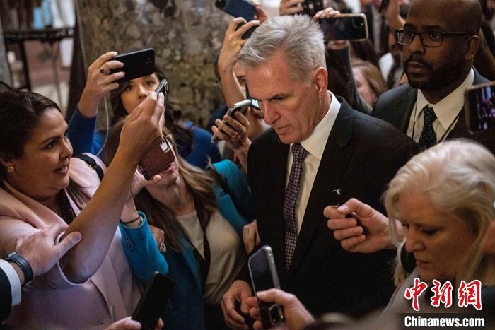 當(dāng)?shù)貢r(shí)間1月4日,美國(guó)國(guó)會(huì)眾議院議長(zhǎng)選舉繼續(xù)進(jìn)行。經(jīng)過(guò)兩天六輪投票,美眾議長(zhǎng)選舉仍無(wú)結(jié)果。圖為共和黨領(lǐng)袖麥卡錫當(dāng)天在前往眾議院時(shí)接受媒體采訪。 中新社記者 陳孟統(tǒng) 攝