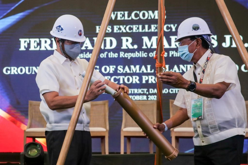 2022年10月,同樣在達(dá)沃。達(dá)沃-薩馬爾大橋開(kāi)工儀式上,菲總統(tǒng)馬科斯與中方建設(shè)者共同埋下時(shí)間膠囊,相約在大橋通車時(shí)取出,共同慶祝中菲合作的又一個(gè)里程碑。