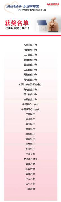 2022年8月3日,在處置非法集資部際聯(lián)席會議辦公室指導(dǎo)、《中國銀行保險(xiǎn)報(bào)》主辦的2022年“守住錢袋子·護(hù)好幸福家”防范非法集資短視頻征集大賽中,人保壽險(xiǎn)報(bào)送的《別讓悲傷隨年邁一起到來》,榮獲2022年“守住錢袋子·護(hù)好幸福家”防范非法集資短視頻征集大賽“優(yōu)秀作品獎”一等獎和“優(yōu)秀組織獎”。