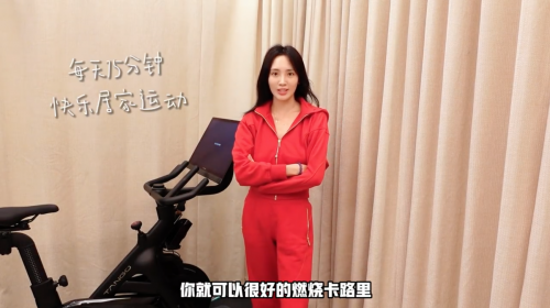 在安全地上車之后,她選擇了一節(jié)自己喜歡的音樂騎行派對(duì),跟著主理人的指導(dǎo),開始絲滑順暢地踩踏。如今在家,也能隨時(shí)高效率地在 TANGO 上進(jìn)行有氧和無(wú)氧相結(jié)合的訓(xùn)練,她表示非常過癮?!案@個(gè)阻力與踏頻,你不會(huì)覺得有那么累,但還是會(huì)流一點(diǎn)點(diǎn)的汗。跟著音樂走你會(huì)覺得時(shí)間過得很快,短短15 分鐘,消耗了就有127大卡!因?yàn)樗恢庇兄魳泛椭骼砣藥е?,所以不?huì)覺得很枯燥,可以快樂的燃脂。而且在家里運(yùn)動(dòng)真是太方便了!”