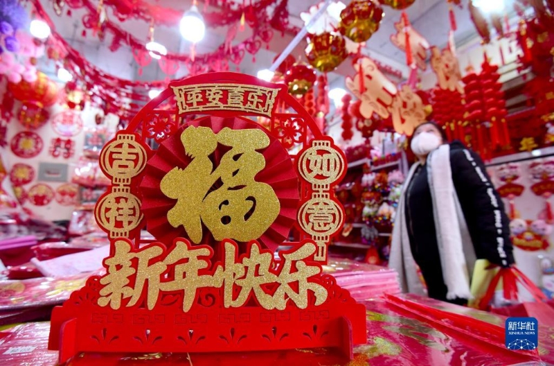 1月6日,市民在河北省邯鄲市永年區(qū)一處年貨市場(chǎng)選購(gòu)節(jié)日飾品。