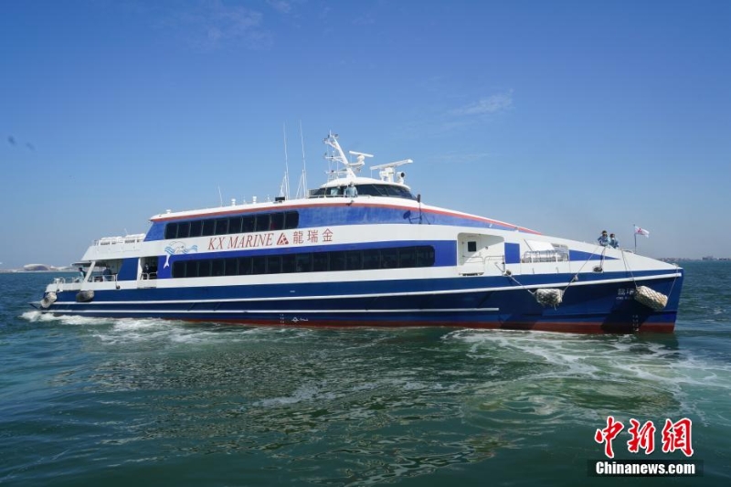 1月7日起至2月6日,暫停了近三年的兩岸“小三通”海上客運(yùn)航線部分恢復(fù)通航。其中,廈門至金門客運(yùn)航線自7日起率先恢復(fù)通航。廈門至金門客運(yùn)航線由兩岸客運(yùn)船舶輪流執(zhí)航,每天執(zhí)行一個(gè)往返班次,上午10時(shí)由金門或廈門五通客運(yùn)碼頭起航,抵達(dá)對岸后再于12時(shí)返回,每艘客輪的載客量約為300人。戶籍設(shè)在金門地區(qū)的臺灣民眾及其配偶、子女等可提前登記預(yù)約乘船。圖為廈金客運(yùn)航線恢復(fù)通航的首航航班金瑞龍?zhí)枴? 鐘欣 攝